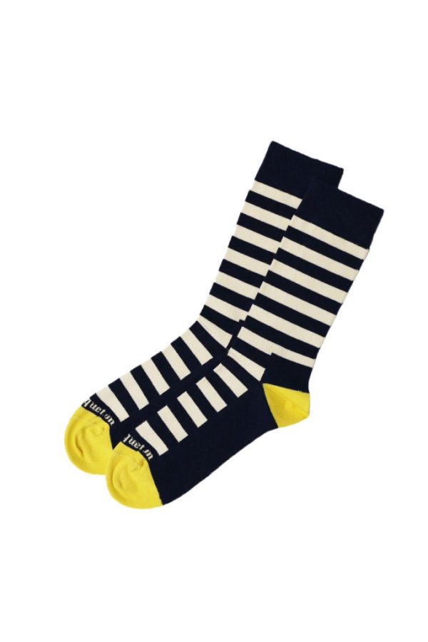 Devenues un véritable accessoire de mode, les chaussettes rayées sont déclinées dans les couleurs des marinières. De quoi assortir vos rayures !
