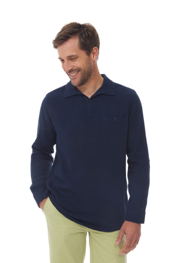 Découvrez notre chemise en gaze de coton pour homme ! Cette chemise homme est idéale pour la saison estivale avec sa matière légère. Cette chemise est à la fois élégante et travaillée avec son col inspiré de la vareuse et sa poche poitrine. Vous apprécierez sa coupe fluide et vaporeuse pour les beaux jours.