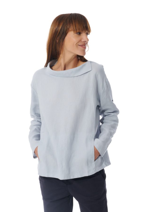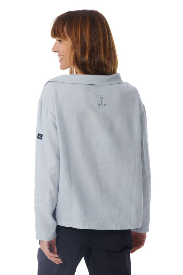 Parez-vous d’une pièce tendance au style marin avec cette blouse en ramie ! Son col asymétrique fait toute son originalité. Sa matière légère et respirante, la ramie, ressemble au lin. Une touche iodée est ajoutée à ce modèle grâce à l’ancre brodée dans le dos.