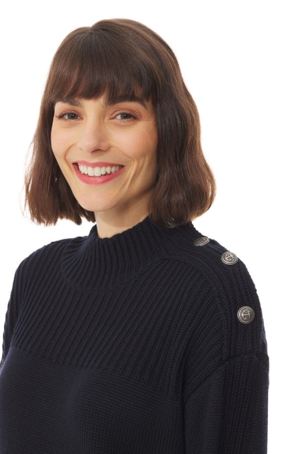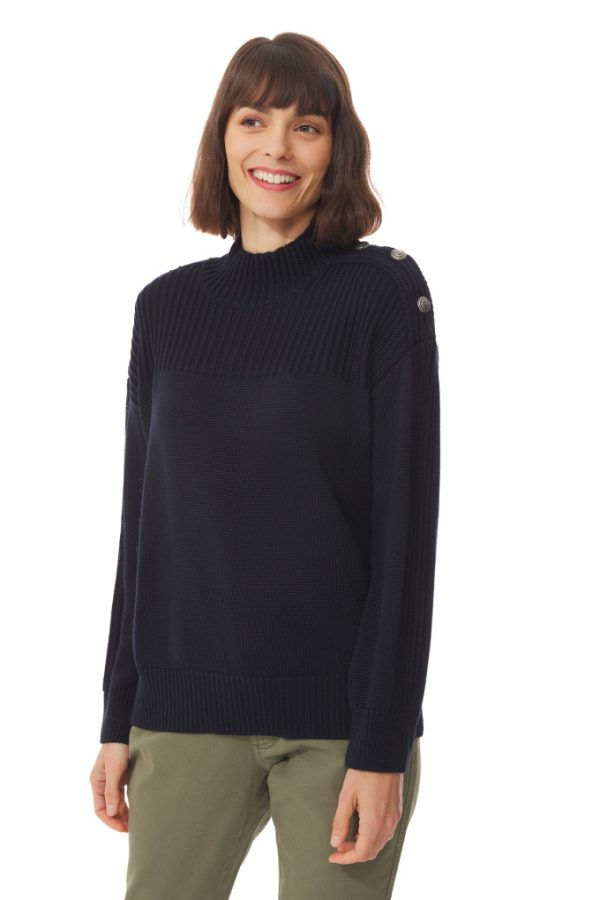 Gilet, Pull Femme | Pull Col Montant Bleu Marine | Mousqueton