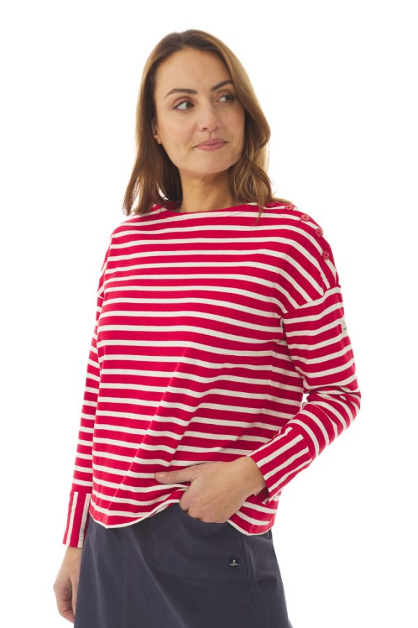 La famille des marinières s’agrandit cette saison ! Découvrez Madalen, la marinière femme au volume ample et aux jolis jeux de rayures opposées sur les poignets. Vous apprécierez son épaule boutonnée qui lui donne une touche d’originalité.