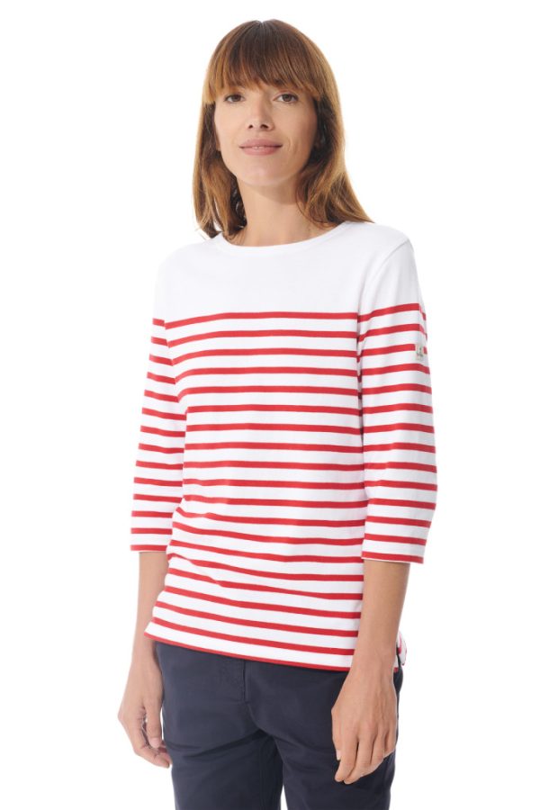 Née sur les côtes bretonnes, la marinière est devenue bien plus qu’un vêtement : c’est un emblème. Avec le modèle Marina blanc et chili, nous revisitons ce classique de la mode française avec une touche contemporaine tout en conservant l’esprit marin, si fidèle à Mousqueton. Cette marinière blanche et rouge aux rayures placées conçues en jersey de coton épais vous offre un confort structuré et un style certain. Larguez les derniers amarres qui vous retiennent et procurez-vous une Marina blanc-chili !