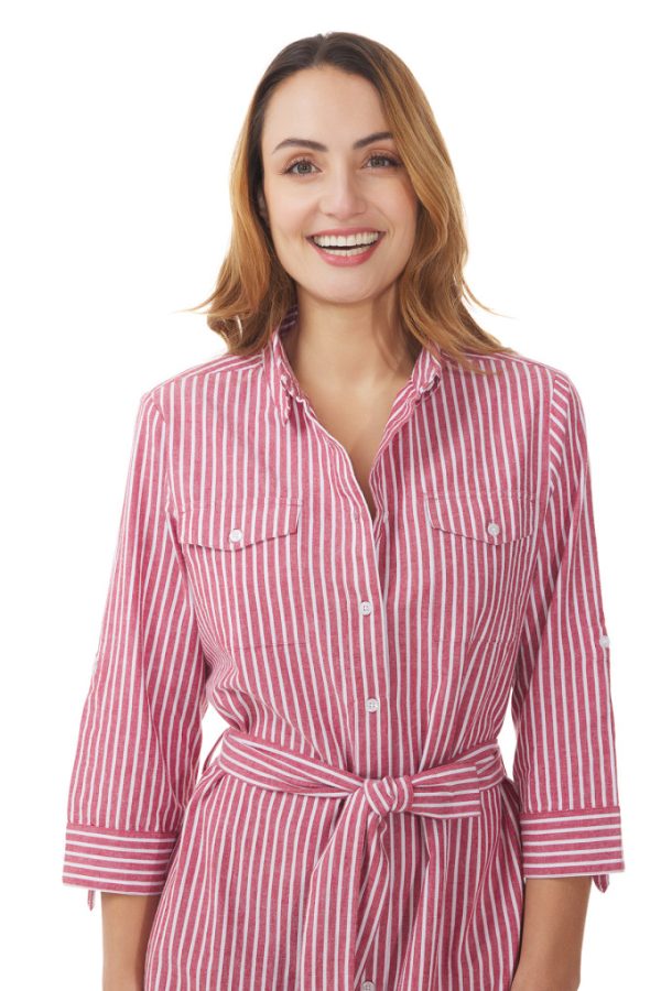 Robe chemise ajustable à la taille.