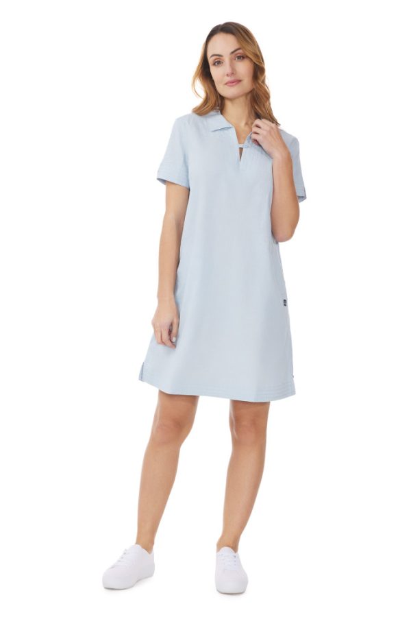 Confortable et respirante, cette robe à manches courtes ne vous quitte pas de l’été ! C’est une robe à porter en toute décontraction, en sandales ou en baskets, grâce à sa coupe légèrement évasée. Craquez pour sa touche d’originalité avec son col boutonné qui rappelle celui de la vareuse. Cette robe à manches courtes est conçue dans un mélange ramie et coton, qui vous procure confort et aisance.