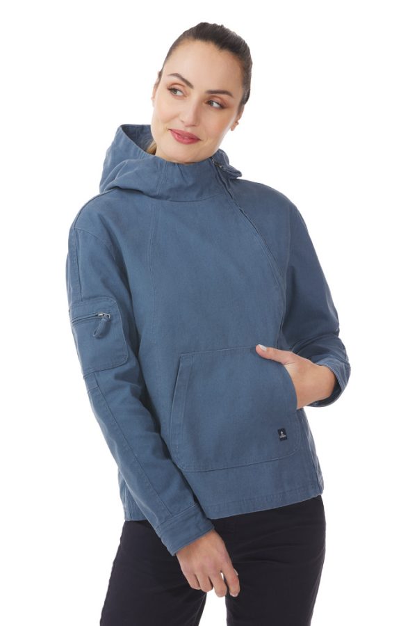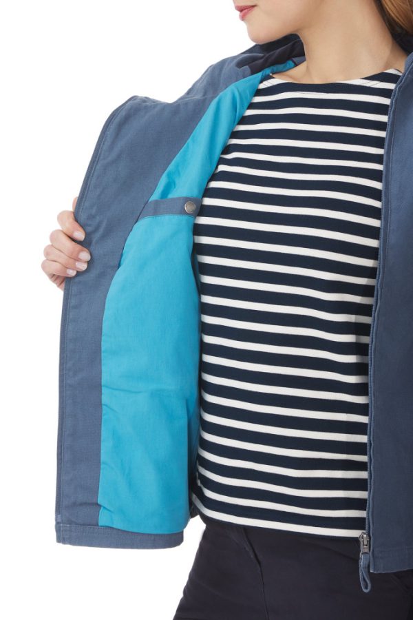 La veste asymétrique femme est le modèle best-seller intemporel de la marque Mousqueton. Aussi originale que colorée, cette veste en toile se distingue par sa fermeture sur le côté. Elle se veut confortable avec l’effet déperlant de son tissu en cas de pluie. La toile de coton de cette veste asymétrique utilise une teinture pigmentaire qui offre un effet blanchi authentique au fil du temps, pour un vrai look marin.