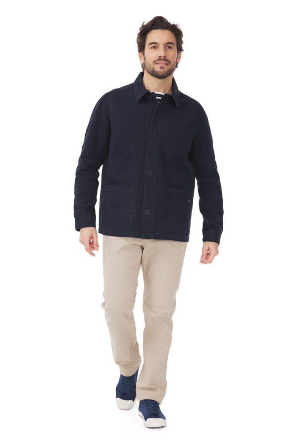 Inspirée de la veste de travail, cette veste homme non doublée présente une coupe droite avec des poches plaquées. Cette veste 100% coton est idéale pour la mi-saison avec sa toile coupe-vent. Vous apprécierez ses finitions intérieures et ses nombreuses poches, marque de fabrique du vestiaire workwear.